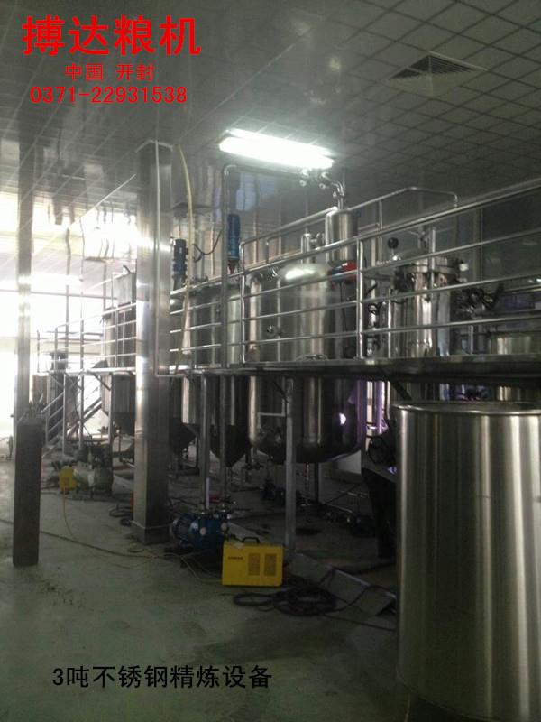 大豆油精煉設備冷脫皮工藝,傳統的大豆油脫皮工藝是冷脫皮工藝,經(jīng)過(guò)初步處理后,在干燥塔內由熱風(fēng)加熱烘干(干燥溫度70-80攝氏度)至含水10%左右,然后儲存倉庫停留24-72H,在環(huán)境溫度下進(jìn)行粉碎,被破碎4-6瓣。破碎的大豆首先在第一級分篩和吸風(fēng)分離器中進(jìn)行分離,分理出含仁豆皮和破碎豆在進(jìn)行第二級分級篩和吸風(fēng)分離器進(jìn)行二級分離。由兩級分離裝置分出的整粒大豆重新返回破碎機破碎,豆仁經(jīng)軟化后送至后續工序,豆皮收集后進(jìn)行加工處理。這種工藝的特點(diǎn)是:經(jīng)烘干和冷卻的豆皮較松軟,易脫皮,單破碎都得粉末度大,豆皮中所含豆仁不宜分離干凈,而且脫皮后的冷豆仁還需要重新加熱軟化,增加了蒸汽消耗。